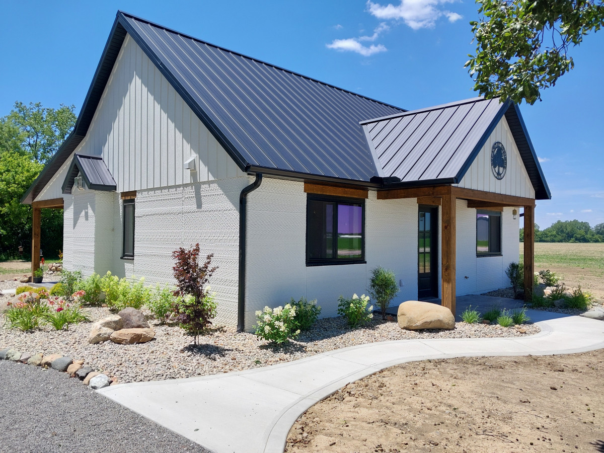 A 1,500 sq. ft. home offering a traditional floor plan with 3 bedrooms and 2 bathrooms, providing a perfect balance of comfort and functionality. Featuring a truss roof and a timeless aesthetic, this home seamlessly blends classic décor with modern technology, creating a unique and inviting living space. This home demonstrates 3DCP’s ability to create traditional looking buildings.